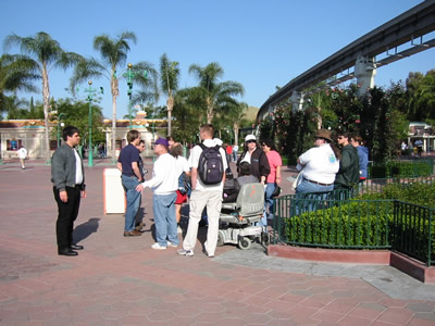 Some Mousetrekkers start to gather in front of Disneyland.